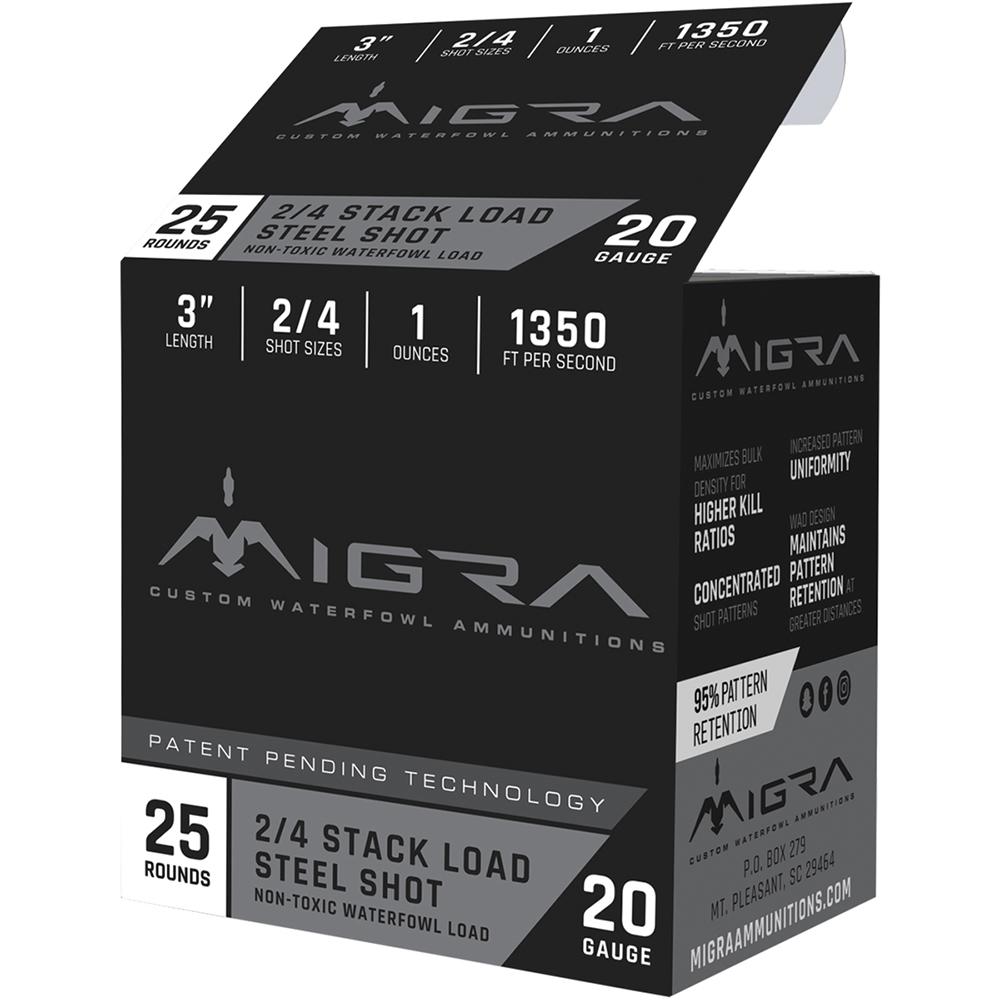 Migra Waterfowl Steel Shot Shotshell 20 ga 3″ 1 oz 1350 fps #2 #4 25/ct